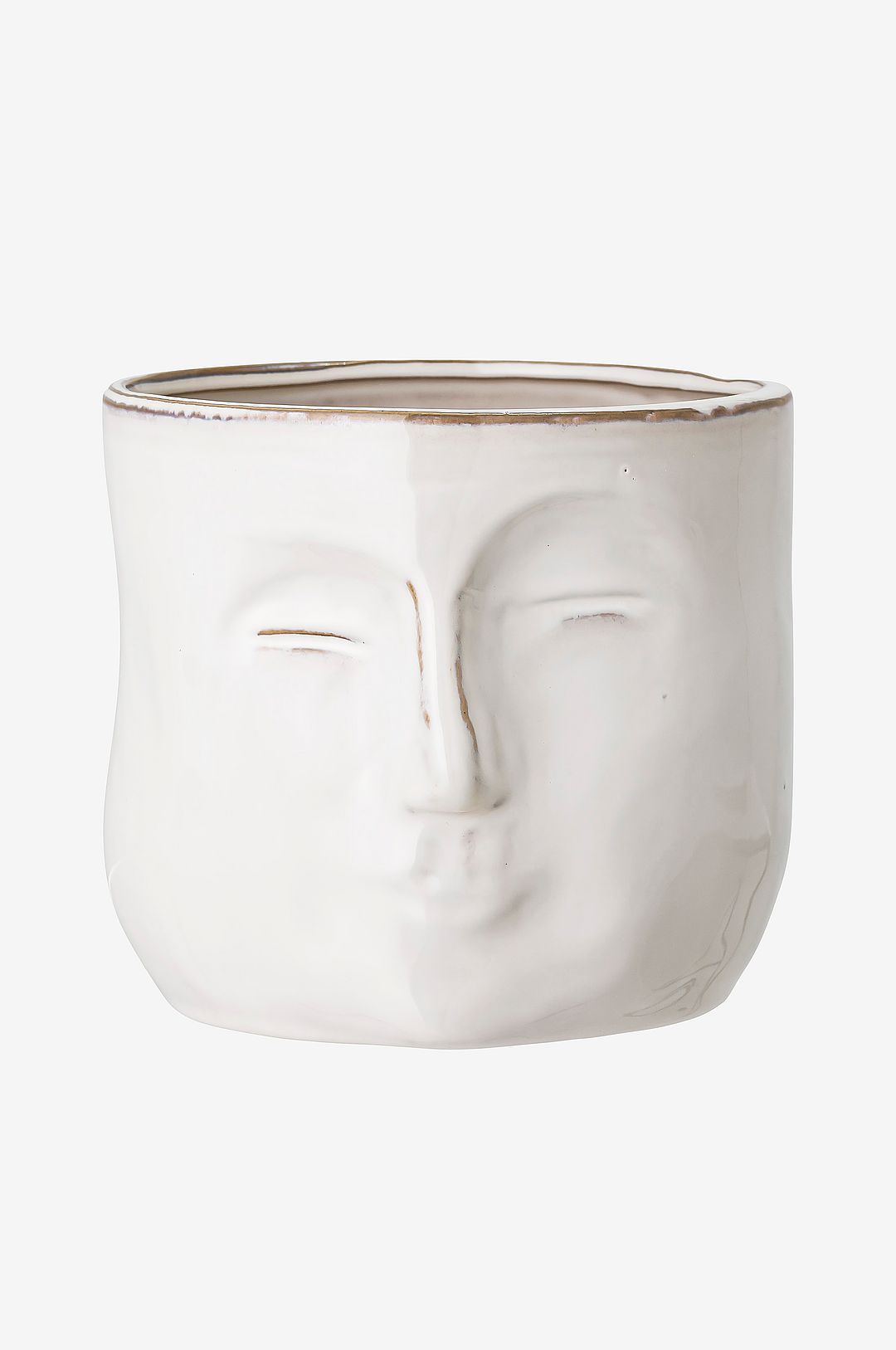 Skulptural blomkruka av stengods med ansiktsmotiv. Den är handgjord och passar perfekt med alla växter.