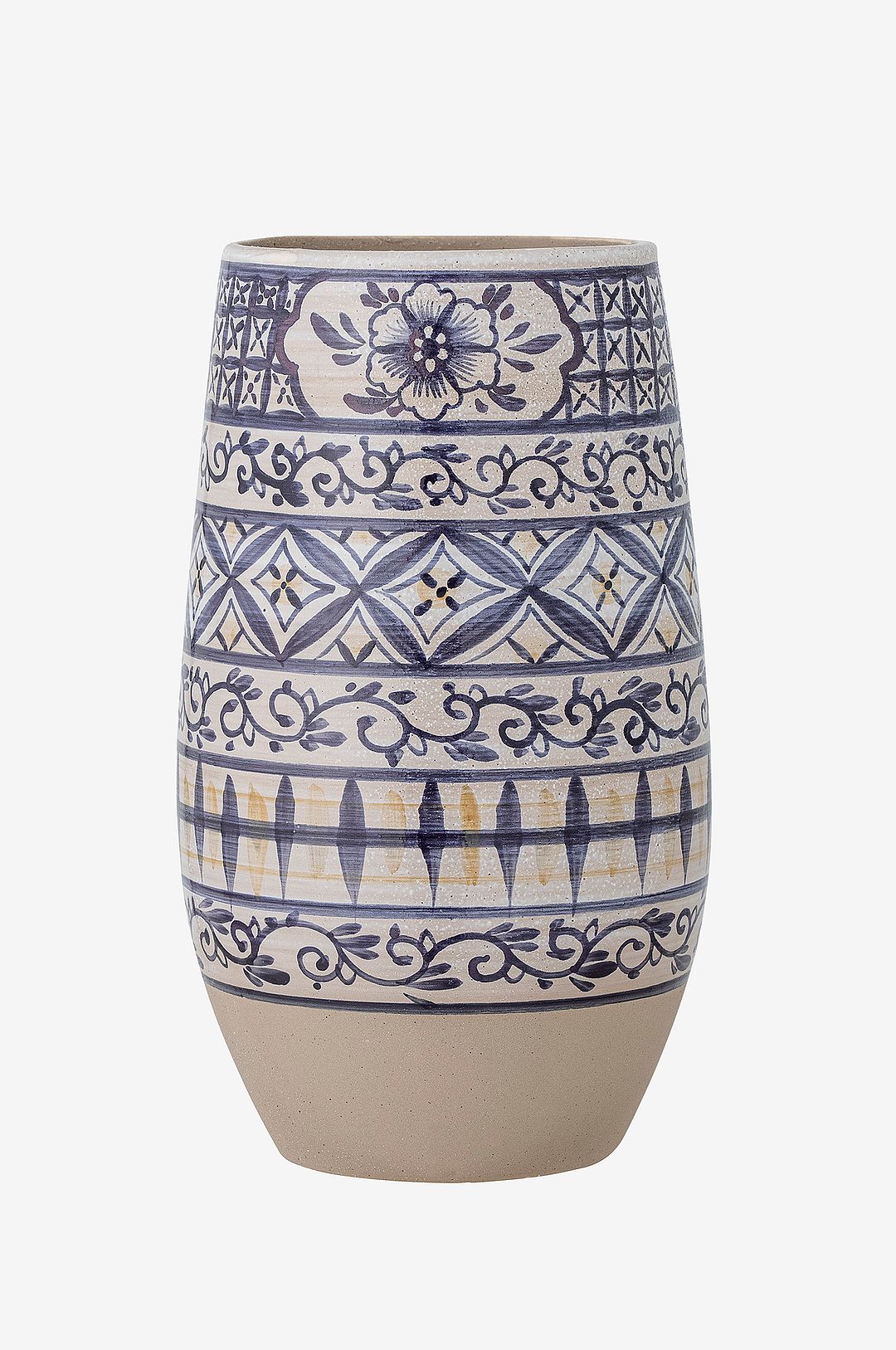 Nadya vas från Bloomingville är gjord av stengods i blåa nyanser. Vasen är målad för hand med ett grafiskt mönster. Varje produkt är unik eftersom de är dekorerade för hand.