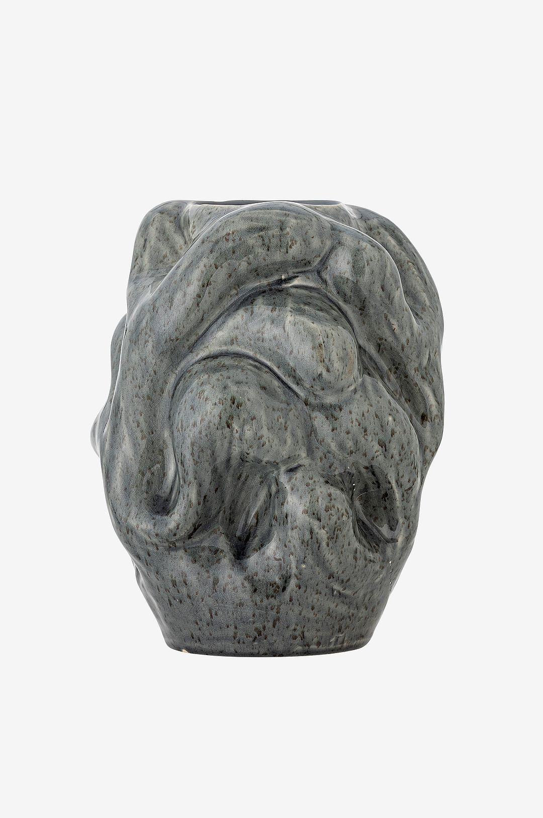 Vasen vuelle från bloomingville är tillverkad av stengods och har en organisk och rymlig design. Dess yta är behandlad med en mörkgrå reaktiv glasyr, vilket ger varje vas ett unikt utseende och säkerställer att ingen är exakt lik den andra. Denna unika design gör vasen idealisk som en fristående dekorativ pjäs eller som en elegant hållare för blomsterarrangemang. Placera den i köket eller vardagsrummet för att ge din inredning en elegant och modern touch. Mått: d24,5xh30,5 cm