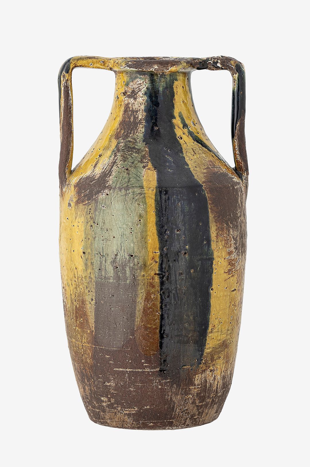 wilder vasen från creative collection är en vacker handdekorerad vas tillverkad av terrakotta. Vasen har två praktiska handtag och har ett unikt färgspel som ger den ett rustikt utseende. Varje vas är handdekorerad, vilket gör varje exemplar unikt. Perfekt för att visa upp dina favoritblommor eller som ett fristående konstverk i ditt hem. Mått: d19,5xh38 cm