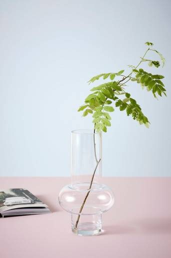 Vackert formad dekorationsvas av glas. En handgjord vas som passar fint till hyacinter. Visar dekorativt både löken och dess rötter. Material: Glas. Storlek: Höjd 26,5 cm, ø 14,5 cm. Skötselråd: Handdisk.