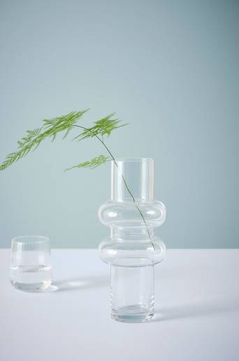 Vackert formad dekorationsvas av glas. En handgjord vas som passar fint till hyacinter. Visar dekorativt både löken och dess rötter. Material: Glas. Storlek: Höjd 29,5 cm, ø 12,5 cm. Skötselråd: Handdisk.