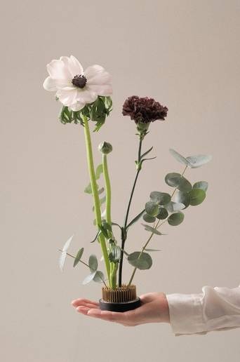 Blomsterfakir med tung metallbotten som har gummisarg och piggar av mässing. Blomsterfakiren är oslagbar när du ska göra fina blomsterarrangemang, med snittblommor eller torkade blommor. Du slipper använda engångsmaterial, FIORE kan du använda om och om igen. Sätt blomsterfakiren i botten av din vas, i en kruka eller på ett fat. Sedan arrangerar du blommorna på de spetsiga piggarna så som du vill ha dem. De färska blommorna vill ju ha vatten men inte de torkade, FIORE fungerar både med och utan vatten. OBS. Gummit kan nötas av med tiden. Material: Tung metall, gummi och mässing. Storlek: ø 6 cm. Höjd 3,2 cm. Skötselråd: Skölj av och låt torka. Tips/råd: Ikebana, japanska blomsterarrangemang, är en klassisk konstart från Japan med fokus på enkelhet och helhet och blomsterfakir används ofta.