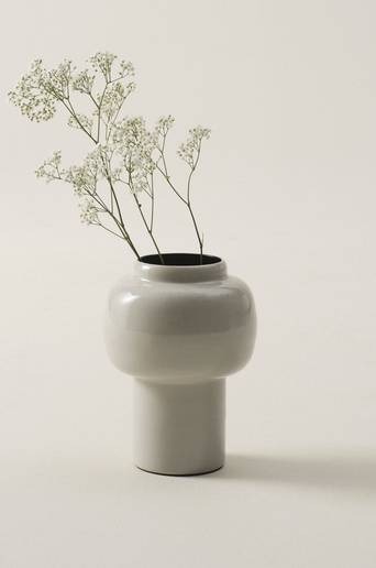 Dekorationsvas av järn med emaljfinish som ger glans och djup till färgen. Formen är stilren och elegant. Matt svart insida och tygklädd botten på utsidan. Vasen tål vatten, men vatten kan över tid göra att den rostar. Materiał: Järn. Storlek: Höjd 24 cm, ø 20 cm. Skötselråd: Handdisk. Tips/råd: Dekorationsvasen LOVIS gör sig fint tillsammans med RONJA och BIRK. Vaserna matchar snyggt tillsammans, i färg, form och storlek.