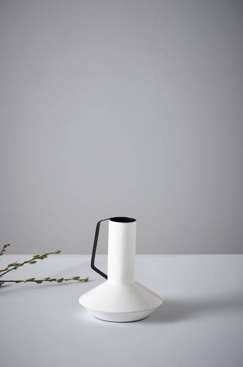Vas/kanna av emaljerad metall i lantlig, gammaldags stil. Material: Metall. Storlek: Höjd 22 cm, ø 20 cm. Skötselråd: Handdisk.