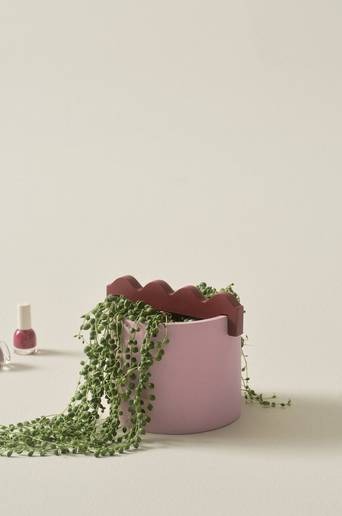 NICCO är en färgstark kruka av polyresin. Eftersom den är helt vattentät gör den sig perfekt till en krukväxt eller snittblommor på bordet. Skulle blommorna vissna så står krukan för färgprakten även tom. Dekoren på toppen kan du ta bort om du vill. Den kan också hjälpa snittblommorna att stå fint i krukan. Material: Polyresin. Storlek: Höjd 15 cm, ø 16 cm, bredd 18,5 cm. Skötselråd: Torkas av med lätt fuktad trasa. Tips/råd: Vill förvara pennor, penslar, sax och andra redskap i krukan kan avdelaren på toppen hjälpa dig att hålla ordning.