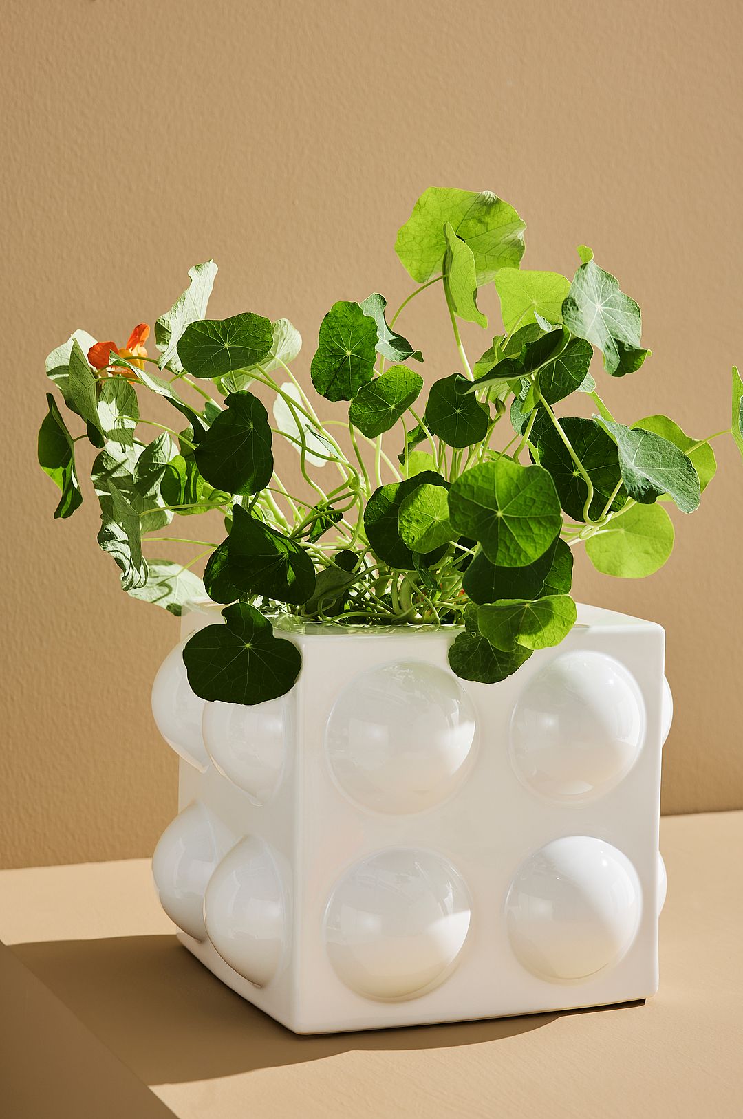 Boo från Pastill är en handgjord, glaserad keramikkruka. Krukan är stor och blir ett statement i ditt hem, garanterat något som väcker uppmärksamhet. Krukan är perfekt för både plantering och för att ställa färska blommor eller torkade arrangemang i.