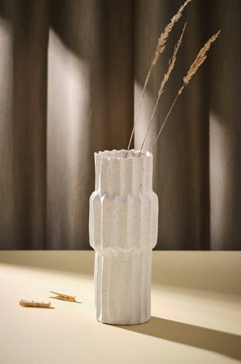 Handmålad vas av keramik. PILAR är en härlig vas med vacker, glansig glasyr med struktur som ger en nostalgisk retrokänsla till ditt hem. Även insidan är glaserad. Viss avvikelse kan förekomma eftersom vasen är handgjord. Keramik kan släppa igenom fukt. Material: Keramik. Storlek: Höjd 37 cm, ø 15 cm. Tips/råd: Enhetliga krukor ger en lyxig och stilfull känsla till ditt rum och att byta krukor är ett enkelt sätt att förnya.