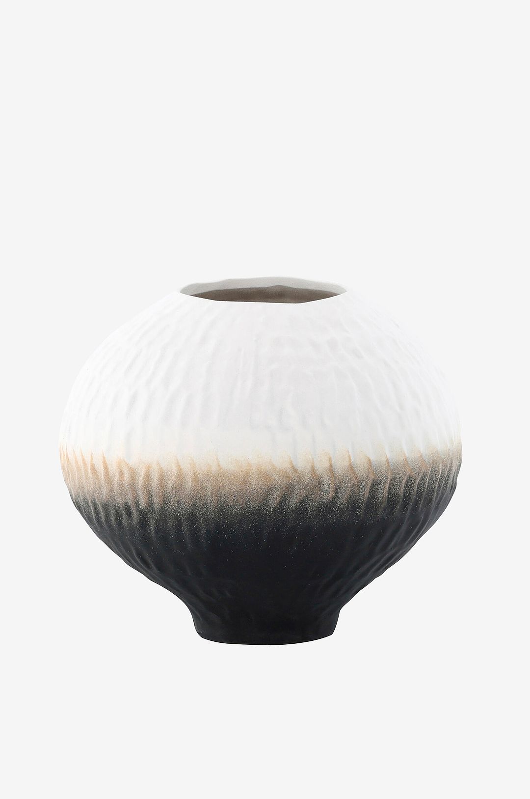 Ge ditt hem en touch av elegans med denna fantastiska sfäriska vas i mångfärgad design. Den imponerande vasen är inte bara stor med en diameter på 24 cm, utan har också en unik färgkombination som framhäver skönheten i alla blomstrande arrangemang. Vasens mjuka toner och grå färg skapar en subtil men ändå iögonfallande effekt, vilket gör den till en perfekt accent i alla heminredningar. Oavsett om du väljer att fylla den med färska blommor eller låter den stå som en vacker konstnärlig detalj på egen hand, kommer den här vasen säkert att bli en blickpunkt i ditt rum. Den sfäriska designen ger vasen en modern och elegant känsla och skapar en harmonisk atmosfär. Placera den på matbordet, i vardagsrummet eller på en hylla för att ge ditt hem en sofistikerad touch. Uppgradera din bostad med denna vackra keramikvas och gör den till ett konstverk i sig.