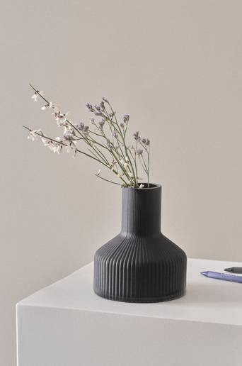 Smalrandig vas av glas som sandblästrats för matt, läcker effekt. Vasen är stilren och står stabilt på en bredare bas. Material: Glas. Storlek: Höjd 14 cm, ø 12 cm. Tips/råd: En snygg vas med vårliga snittblommor eller egenplockad sommarbukett på bordets mitt slår det mesta.