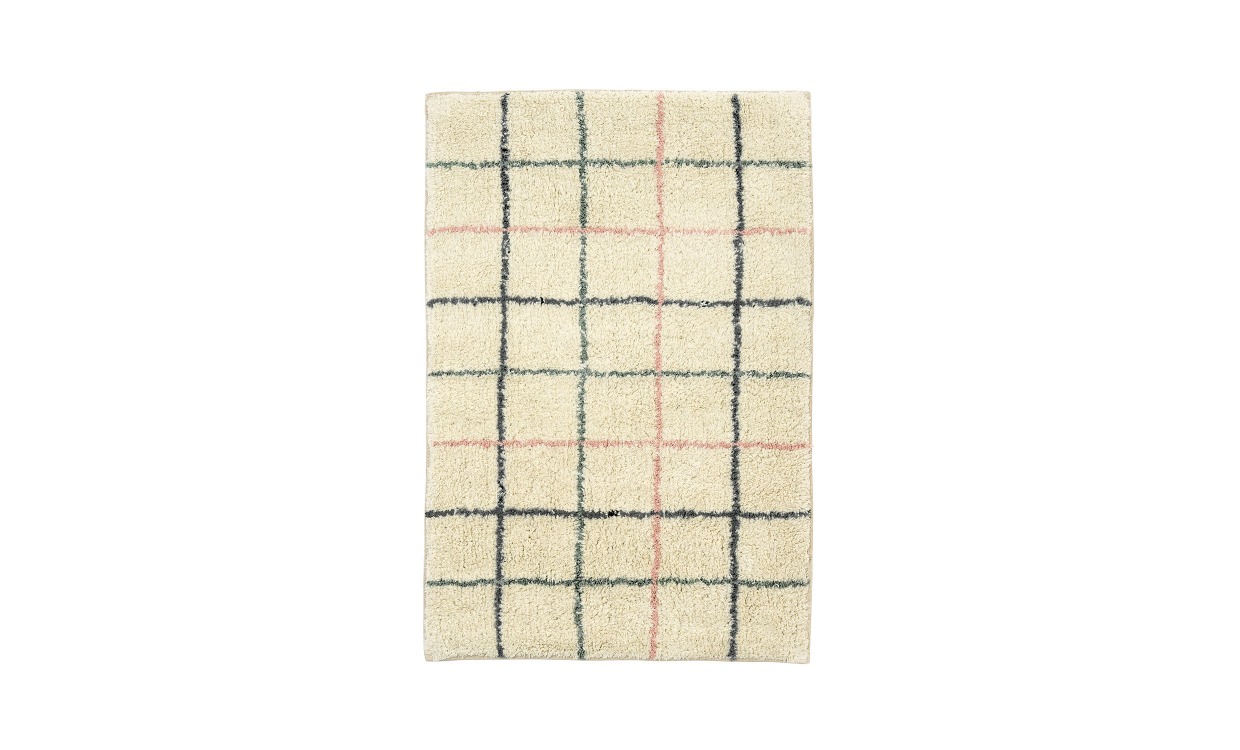 Ge badrummet ett modernt och lekfullt lyft med denna rutiga, tuftade badrumsmatta i offwhite, rosa, ljusblått och grått. Den mjuka bomullskvaliteten ger en behaglig känsla under fötterna, medan baksidan i halkskyddande latex bidrar till ökad säkerhet i vardagen. En dekorativ och praktisk detalj som kombinerar komfort med stil.Design & egenskaperTuftad bomullsmatta från Madam Stoltz.Mått: 60 x 90 cm.Vikt: 0.8 kg.Material & skötselTillverkad i mjuk bomull.Maskintvättas i 30 °C på skonsamt program, formas sedan om och torkas plant utan direkt värme.Undvik blekmedel och sköljmedel för att bevara latexbeläggningen och hålla färgerna fräscha.