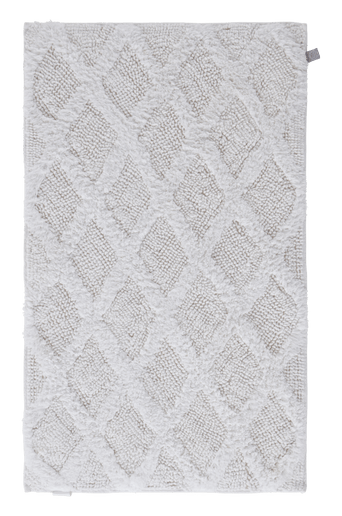 Mjuk, vändbar badrumsmatta med fint rombmönster, mönstret skapas av både färg och struktur. Den behagliga mattan kan vändas som du önskar, båda sidorna är lika mjuka. Material: 100% bomull. Storlek: Välj storlek vid beställning. Skötselråd: Tvätt 40°. Tips/råd: Uppdatera med ny badrumsmatta och fräsch frotté så känns hela badrummet som nytt.