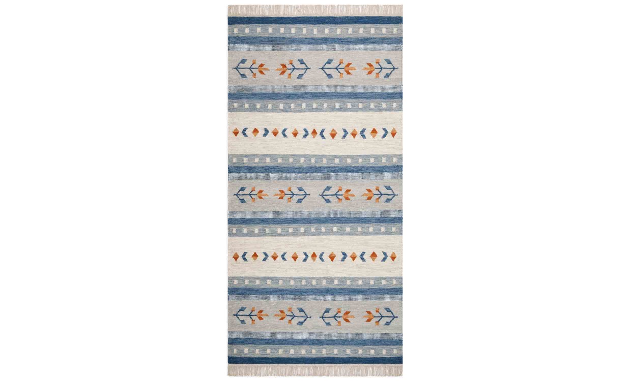 FANNY är en handvävd matta med röllakanteknik, den har röllakansmönster med ränder som pryds av tulpan rader. Eftersom den är gjord av ull är den även lätt smutsavvisande, man kan alltså enkelt torka bort mindre fläckarr med en fuktig handduk och mattan är väldigt tålig. Mattans avslut är klädd med en bomulls frans längs med kortsidorna. Den gör sig precis lika bra i läshörnan som under matbordet.Varje matta blir unik, eftersom att alla mattor har handvävts så kan det variera något mellan varje exemplar.Design & egenskaper80% Ull, 20% BomullHandvävd Ca 10 mm tjockMaterial & skötselRengör fläckar med handduk eller mjuk borste, lite vatten och såpa. För rengöring utav hela mattan rekommenderas fackmässig tvätt.Eftersom en ny ullmatta har ett överskott utav mattludd så är det bra att dammsuga den regelbundet.
