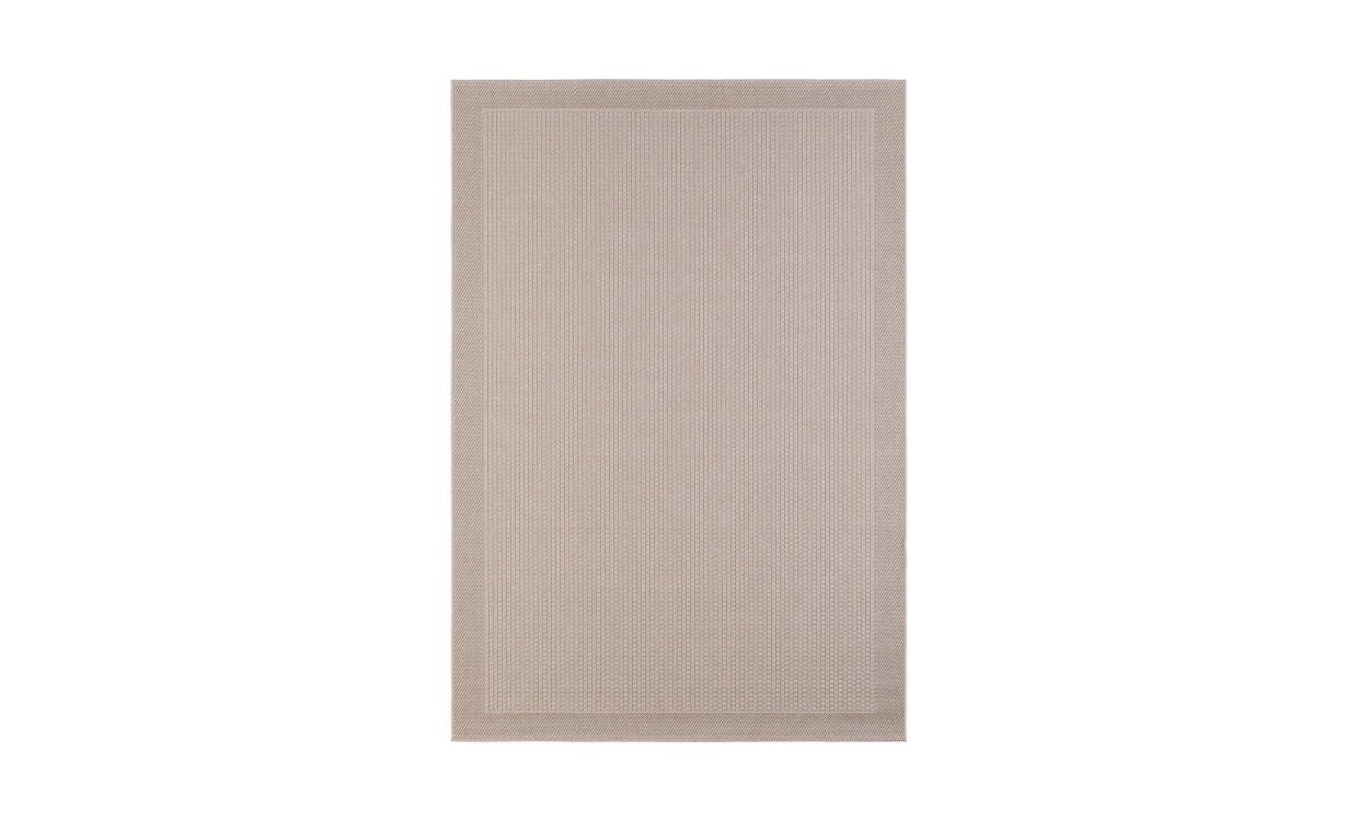 Florida är en härlig somrig matta för terrassen eller uterummet som är slitstark och skön att gå på. Runt kanten löper en dekorativ bård som ringar in den slätvävda mattan. Florida passar både ute och inne och ger vackert, stilrent uttryck.Design & egenskaperStilren och modern design.Tillverkad av slitstark polypropylen som gör att mattan även kan användas utomhus.Dimensionerna för mattan är 200×290 cm.Material & skötselEftersom Miami är tillverkad i 100% polypropylen och inte innehåller några jutetrådar, så innebär det att mattan tål väta och därför passar lika bra inomhus som utomhus.Då Miami inte har någon tät lugg där smuts kan fastna, så är den tacksam att rengöra och dammsuga.