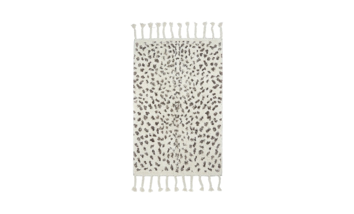 En rektangulär tuftad matta med ett mönster som påminner om en gepards päls. Mattan passar både i sovrum, badrum och hall. Kombinera gärna med mattor från samma serie och färg.Design & egenskaperRektangulär matta med prickar som liknar ett gepardsmönster.Mattans dimensioner är 60×90 cm.halkskydd rekommenderas för att mattan ska ligga bättre mot golvet och för att minska halkrisken.Material & skötselProdukten är tillverkat i 100% bomull.Certifieringen garanterar att produkten är testad och fri från ämnen som kan vara skadliga för hälsan och miljön.Produkten är certifierad enligt STANDARD 100 by OEKO-TEX®.