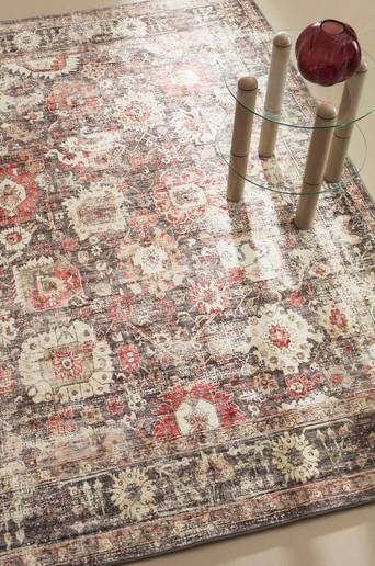 RIA luggmatta har en orientaliskt inspirerad design och intrikata mönster som ger en exotisk touch till alla rum. Den är tillverkad av syntetfibrer och är både snygg och praktisk. Halkskyddande prickar på baksidan garanterar säkerhet och stabilitet, vilket gör den perfekt för alla typer av golv. De rika färgerna och detaljerade motiven skapar en livlig fokuspunkt som förhöjer atmosfären i din inredning med en unik känsla. Material: 100% Polyester. Mattans baksida: non-woven. Storlek: Välj storlek vid beställning. Lugghöjd: 0.6 cm. Tjocklek: 1.1 cm. Gramvikt: 1450 g/m². Skötselråd: Dammsug regelbundet med munstycke utan borst. Eventuella fläckar tas bort med fuktig trasa. Lämna in för fackmässig tvätt. Tips/råd: Vänd mattan då och då för jämnt slitage. Stark sol kan få den att blekna.