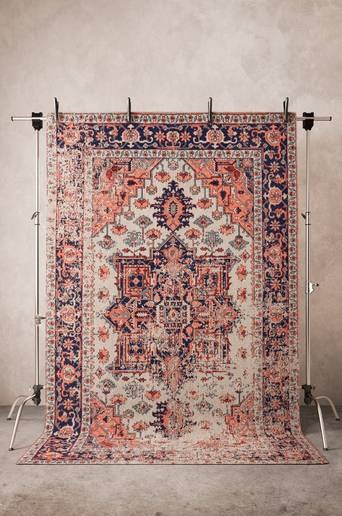 Jaquardvävd matta i bomull och polyester med invävt mönster. En vacker slätvävd matta i välstämda färger och med skön vintagekänsla. Lugghöjd 0,6-0,7 cm. 1800-2000 g/m². Material: 93% bomull och 7% polyester. Storlek: 200×300 cm. Skötselråd: Dammsugning. Ta bort fläckar med en lätt fuktad trasa. Tips/råd: Låt dig inspireras av olika mönster. Mattan kan vara det som bidrar till färg- och mönstervalet för hela rummet.