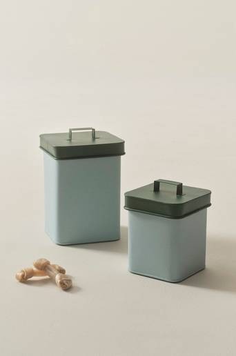 2-pack med två burkar med lock, allt av järn med matt yta i glada färgkombinationer. Handtag på locket gör det enkelt att öppna burkarna. Burkarna passar bra till mycket och är lika fina till matvaror som till hundens torrfoder. Material: Järn. Storlek: 1 st höjd 25 cm, 16×16 cm och 1 st höjd 19 cm, 14×14 cm. Skötselråd: Handdisk. Tips/råd: I barnens rum finns alltid mycket att sortera och hålla reda på. Då är burkarna LUCA ett trevligt alternativ.