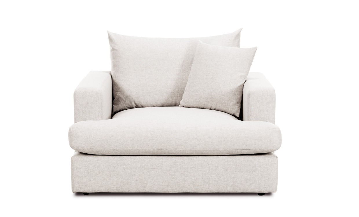 Bolnuevo är en utomordentlig fåtölj med mellanmjuk komfort och generös sittyta. Soffans rogivande uttryck och stil bidrar till en mysig atmosfär i ditt vardagsrum. Slå dig ner och slappna av i sköna Bolnuevo.Design & komfortUtomordenlig fåtölj med mellanmjuk komfort och generös sittyta.Kärnan i sittplymåerna består av formskuret kallskum och har en topp utav skumgranulat (70% rivet kallskum och 30% silikonfiber). Ryggplymån och prydnadskudden innehåller skumgranulat. Alla plymåer och kuddar kräver omvårdnad för att inte tappa formen. Vi rekommenderar att skaka och puffa på dem ofta för att behålla den optimala spänsten och formen på stoppningen i så hög grad som möjligt. Svarta cylinderformade ben i plast.En prydnadskudde 45×45 cm medföljer.Tyg & skötselTyg i 100% polyester.Vikt 370g/m2, martindale 80 000, ljusfasthet 4/5, pilling 3-4/5Klädseln på ryggplymån, sittplymån och prydnadskudden är avtagbara.Vi rekommenderar att tyget kemtvättas. Bör ej strykas.Leverans & förpackningLevereras monterad.Antal förpackningar: 1 stFörpackningsmått: 73x118x116 cmNotera att extrabilderna visar fåtöljen i färgen offwhite.