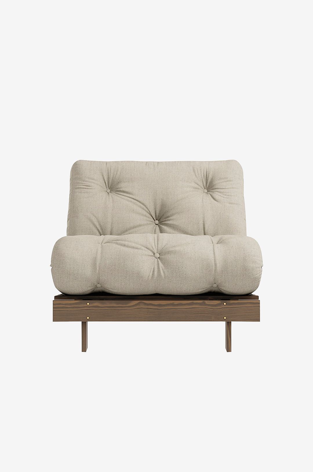 En . Tidlös . Möbel. Roots 90 är sinnebilden av Karup Design. Du får inte bara en soffa, utan även en säng och en bekväm loungefåtölj. Genom att sätta ner de främre benen och justera ryggstödet får du en bekväm loungefåtölj. Genom att fälla ner ryggstödet helt får du en fin säng där du kan slappna av och ladda om. Vik ryggstödet, vik ihop madrassen och vips så har du en normalhög loungefåtölj. Roots 90 förvandlas snabbt och enkelt – nästan magiskt. Eller hur? Observera att eftersom trä är ett levande material som utvecklas med tiden kan det förekomma mindre färgvariationer från en produkt till en annan.