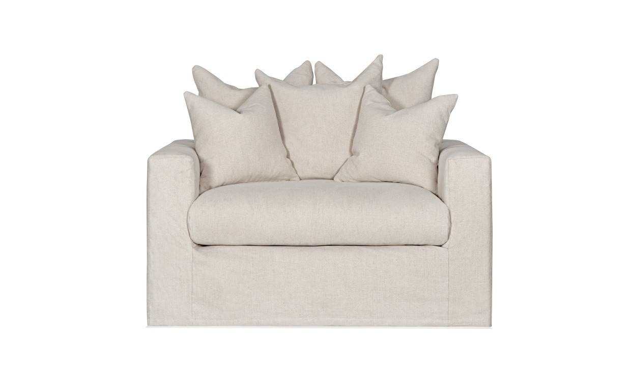 Storfavoriten Monaco är en fåtölj med oslagbar sittkomfort. Den generösa sittytan skapar, i kombination med den mjuka dynan och de härliga kuddarna, en mysig fåtölj som på ett avslappnat sätt bjuder in till umgänge – så som en fåtölj bör. Design & komfortSittkomforten är mycket god, med stor och mjuk sittplymå och ett något längre sittdjup än vanligt. Sittplymån har en kärna av bonellfjädrar och är täckt av kallskum 35 kg/m³ med en topp av silikon och rivet kallskum.Fåtöljens ryggstöd består av tre större (55×55) och två mindre (40×40) kuvertkuddar i silikon och rivet kallskum som kan placeras efter eget behag.Stomme av furuträ, träfiberskiva och plywood.Ben i brunmålat trä.Tyg & skötselKlädsel i 80% bomull och 20% linne, ett formbeständigt och slitstarkt material med mjuk och härlig linnekänsla. Tyget har en loose fit-effekt, det vill säga lite löst sittande, vilket bidrar ännu mer till linnekänslan.Vikt 370g/m2, martindale 30 000, ljusfasthet 5/5, pilling 4/5Klädseln är avtagbar på hela fåtöljen. Kemtvätt rekommenderas. Vid mindre uppkomna fläckar tryck varsamt med en mjuk lätt fuktad trasa gnid inte.Sittdynor och kuddar kräver omvårdnad så för bästa resultat behöver du skaka och puffa upp dem med jämna mellanrum. Leverans & förpackningLevereras monterad, med undantag för ben och klädsel som medföljer separat.Antal förpackningar: 1 stFörpackningsmått: 72x102x120 cmVikt: 45 kg