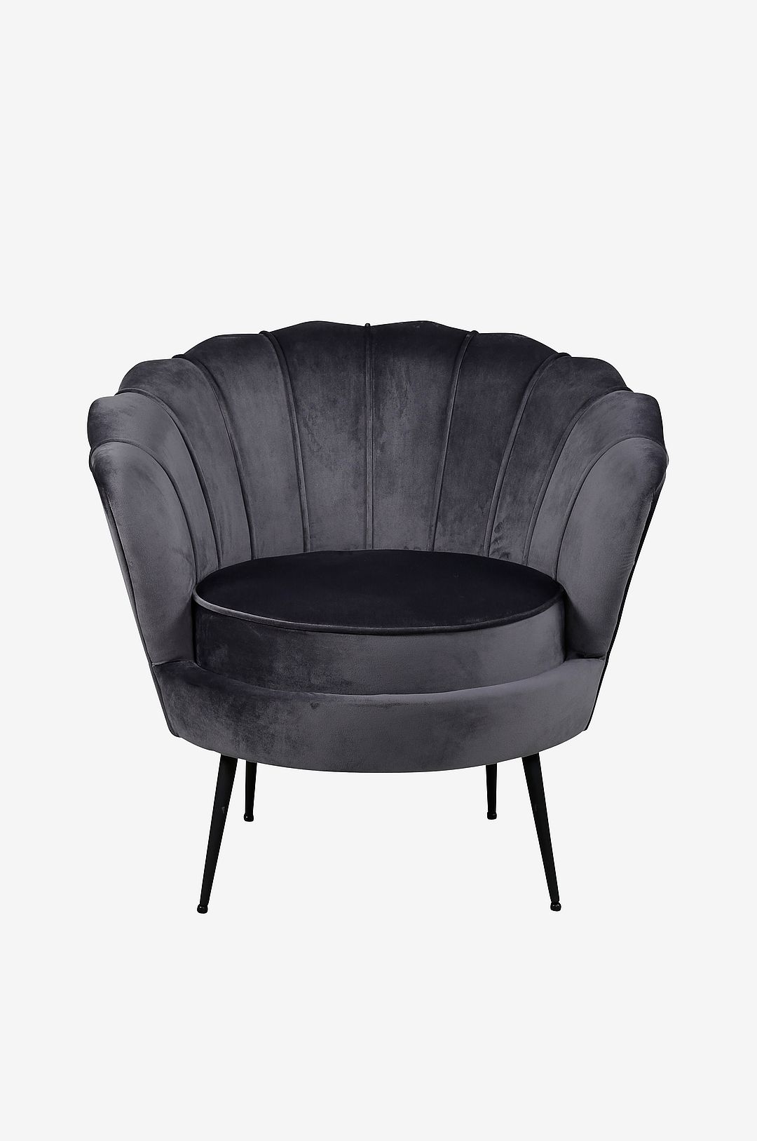 Calais är en fåtölj med klädsel i sammet och ben i metall. Fåtöljens mått: Sitthöjd: 45 cm, Sittbredd: 53 cm, Sittdjup: 55 cm. Fåtöljen kräver enklare montering.