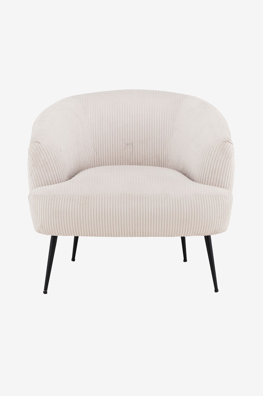 Låt modern design möta 50-tals nostalgin med den här trendiga manchsterfåtöljen från serien Derry! Klädd i lent ljust sammetstyg i beige kulör som ger fåtöljen ett härligt lyster. Den böjda och mjuka designen, de smala, höga benen och generösa sittdjupet skapar en luftig och inbjudande känsla. En otroligt genomtänkt helhetsdesign helt enkelt med klädd baksida som möjliggör att placera fåtöljen mitt i rummet. Möblera ensam som stilikon eller tillsammans med soffgruppen och njut av avkopplade stunder!