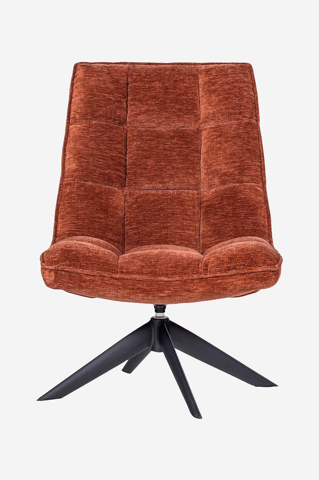 Bekväm och modern design lyxigt tyg i chenille funktionell snurrfunktion del av jouke-serien den snurrbara fåtöljen jouke från kollektionen av det holländska inredningsmärket woood kombinerar komfort och stil i ditt vardagsrum. Denna fåtölj i rostbrunt har en modern design som passar olika inredningsstilar. Det mjuka chenilletyget inbjuder dig att koppla av efter en lång dag. Tack vare den praktiska snurrfunktionen kan du enkelt ändra riktning och alltid vara en del av konversationen. Oavsett om du läser en bok eller har en mysig pratstund med vänner och familj kommer den här fåtöljen att bli din favoritplats hemma. Material Fåtöljen är klädd med chenilletyget cliff, som består av 100% polyester. Detta tyg har en mjuk textur och erbjuder ett lyxigt utseende. Med ett martindalevärde på 10.000 kan tyget behålla sin vackra kvalitet i flera år med rätt underhåll. Produkten är fsc-certifierad, vilket står för ansvarsfullt skogsbruk. Mått höjd: 97 cm bredd: 70 cm djup: 85 cm sitthöjd: 42 cm Sitsbredd: 70 cm Sittdjup: 47 cm benhöjd: 23 cm vikt: 13,7 kg bärförmåga: 140 kg Underhåll dammsug chenilletyget regelbundet med en mjuk borste för att avlägsna damm. Vid fläckar, torka försiktigt med en ren trasa, undvik att gnugga. Vid envisa fläckar kan du använda milt tvålvatten. Undvik långvarig exponering för direkt solljus för att bibehålla tygets bästa kvalitet. montering & leverans varan är lätt att montera med hjälp av de medföljande monteringsanvisningarna. Du kommer att få denna artikel i 1 paket. Du kan placera filtkuddar under benen för att förhindra skador på golvet.