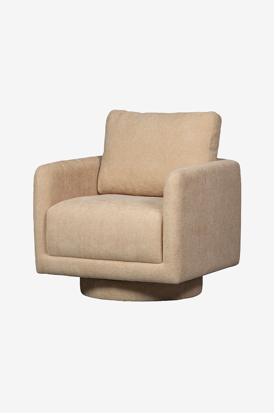 Bekväm snurrfåtölj kubformad sits klädd i mjuk chenille med stoppat vridbart underrede h 64 cm x b 78 cm x d 79 cm djärv och bullig! Det är den snurrbara fåtöljen Oscar från kollektionen från det holländska inredningsmärket woood. Oscar är klädd från topp till tå i en mjuk chenille som ger den fyrkantiga designen ett vänligt utseende. Den vridbara foten ger extra lyxig sittkomfort. Material vår aaf chenille har en slående struktur som ger den ett lyxigt utseende och en speciell glans. Det mjuka tyget är tillverkat av 100% polyester, vilket gör underhållet mycket enkelt. Chenilletyget har en martindale på 100.000, vilket gör det mycket motståndskraftigt mot öglor, blekning och slitage. Mått – höjd: 64 cm – bredd: 78 cm – djup: 79 cm – sitthöjd: 46 cm – Sitsbredd: 58 cm – Sittdjup: 65 cm – tjocklek på sits: 36 cm – tjocklek på sittdynan: 27 cm – armstöd hxw: 51×68 cm – ryggstödets höjd: 51 cm – ryggdyna hxwxd: 43x58x19 cm – ben hxw: 12×55 cm – viktkapacitet: 120 kg Underhåll små fläckar kan lätt tas bort med en fuktig trasa. Vid envisa fläckar rekommenderas att du duttar på tyget med en fuktig trasa och ett neutralt möbelschampo. Efter en tid kan det uppstå en blank yta på favoritsitsen. Leverans objektet levereras individuellt, helt monterat. För att skydda hårda golv, placera filtglidare på undersidan av det vridbara underredet.