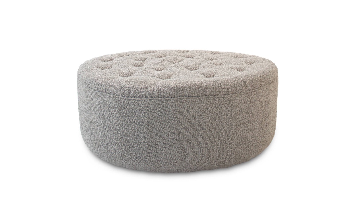 Detta är en mysig sittpuff som passar perfekt i vardagsrum eller i sovrum. Sittpuffen är klädd i boucle-material som skapar en skön textur och mjuk yta. Puffen pryds även av 21 stycken knappar på dess topp. Design & egenskaperMysig sittpuff som pryds av knappar och mjukt tyg.Stommen är tillverkad av MDF och solid trä. Fylld med PU skum.Boucle-tyget är tillverkat av 100% polyester.Leverans & förpackningLevereras monterad. Antal förpackningar: 1 stFörpackningsmått: 42x99x99 cmVikt 17 kg