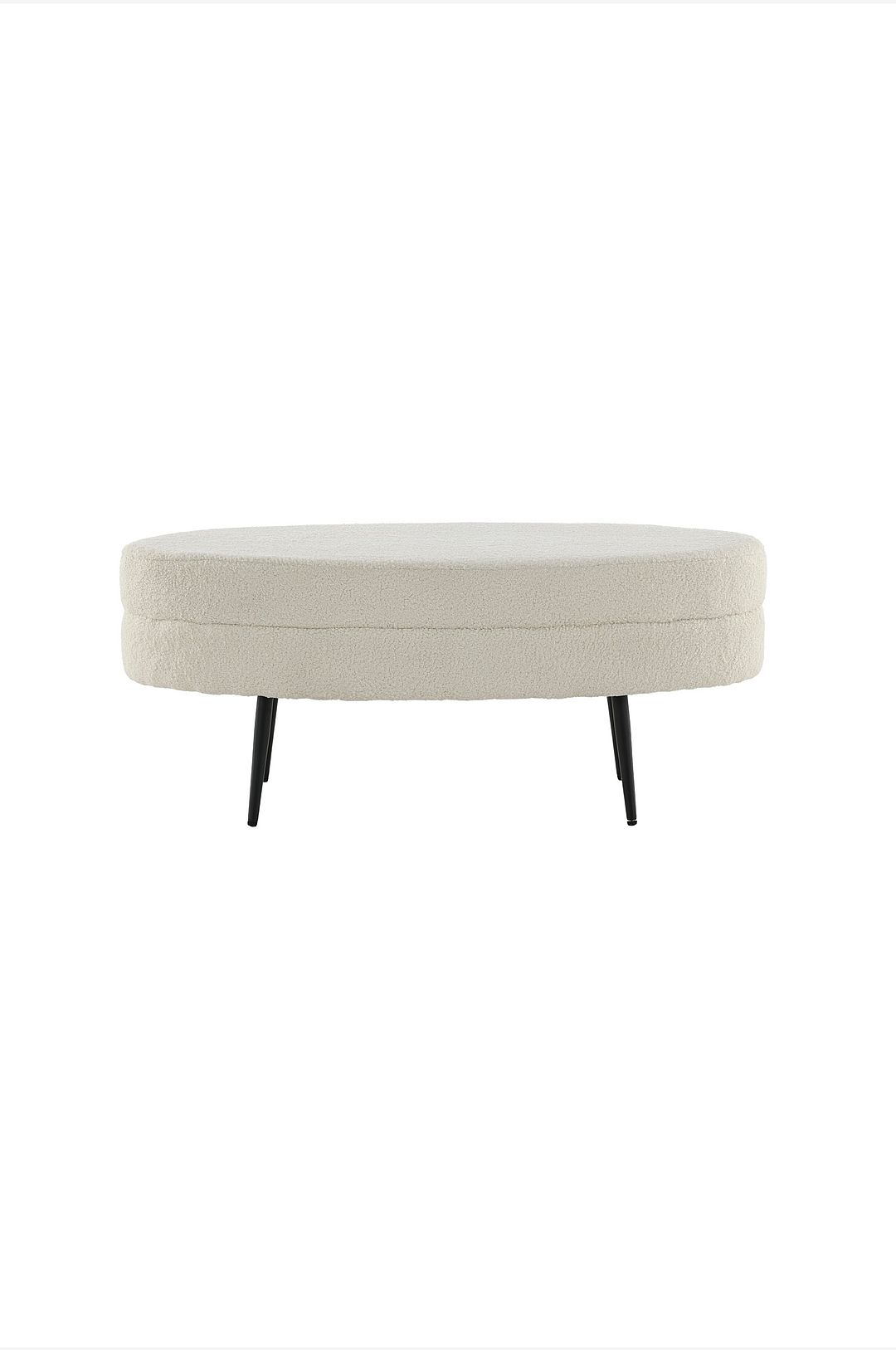 Otto sittpuff med en sits i teddy, manchester eller sammetstyg och ben i järn. Sittpuffens mått: Bredd: 100 cm, Djup: 40 cm, Höjd: 41 cm. Sittpuffen kräver ingen montering.