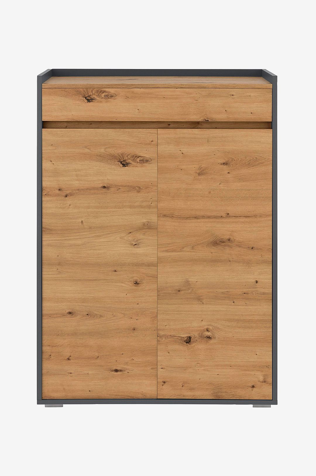 Det här stilrena och minimalistiska skoskåpet är ett utmärkt förvaringsalternativ för din entré. Med sin enkla, moderna design kan det lätt kombineras med den befintliga inredningen och passar in i alla hem. Matta ytor och subtila färger karaktäriserar utseendet. Bakom dörrarna erbjuder skoboxen gott om plats för flera par skor. Ovanför är den utrustad med en låda där du kan förvara småsaker. Tack vare en melaminbeläggning imponerar skoboxen med sina reptåliga egenskaper. Finns i två färger.