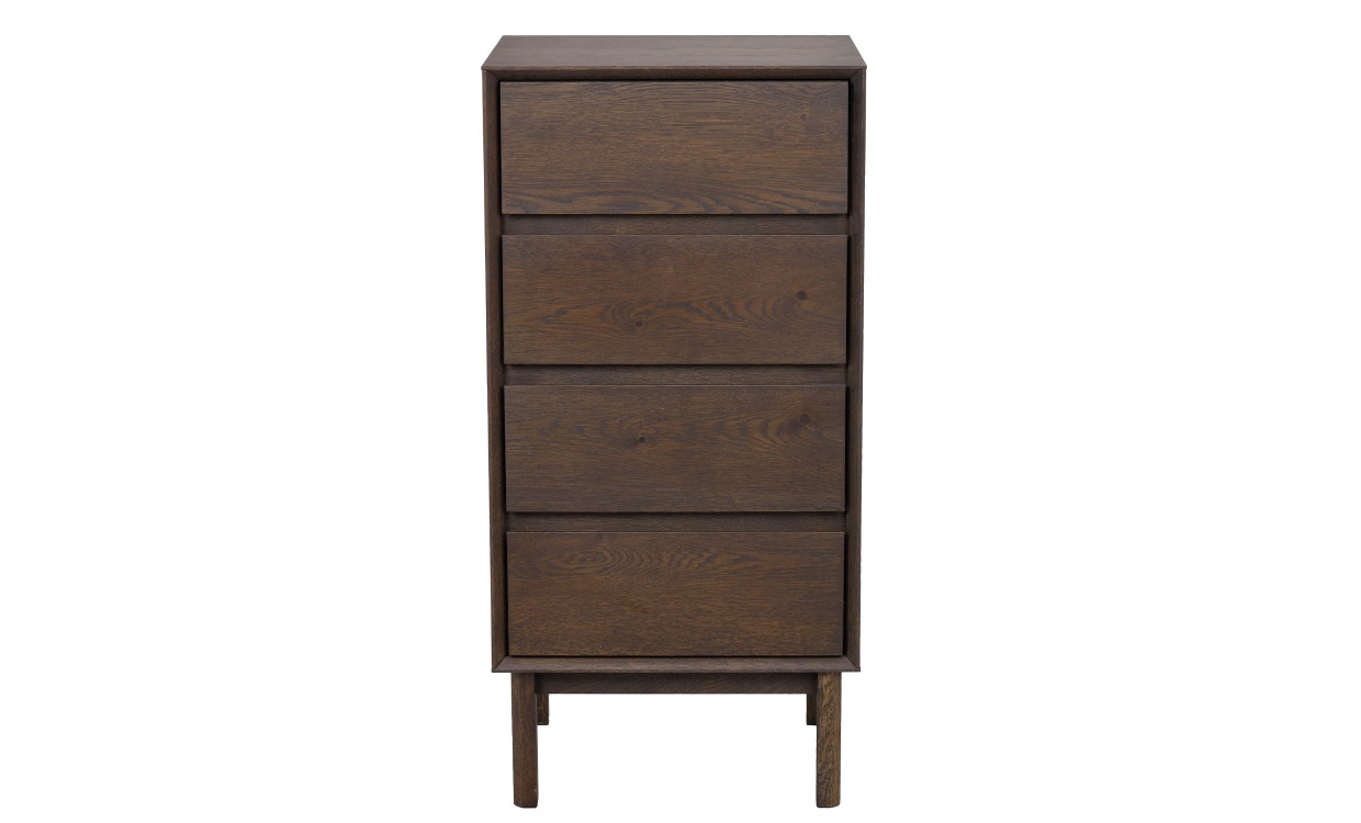 Mackay är en tidlös byrå i skandinavisk design och passar lika bra i hallen som i sovrummet. Denna byrå har fyra lådor i ett gediget hantverk med girade hörn, inramningen runt lådorna skapar ett djup och ger en levande känsla till hela rummet. Designen är klassisk med sina raka linjer vilket också gör den hållbar över tid. Byrån är tillverkad i ek som bidrar till en härlig karaktär på möbelns yta. Design & egenskaperTidlös byrå i skandinavisk design från Rowico.Produkten är tillverkad av 100% ek.Rengör fläckar med en mjuk fuktad trasa.Skydda bordet från värme. Leverans & förpackningLevereras delvis monterad.Antal förpackningar: 1 st.Förpackningsmått paket 1: 46x53x86 cmFörpackningsvikt paket 1: 32 kg.