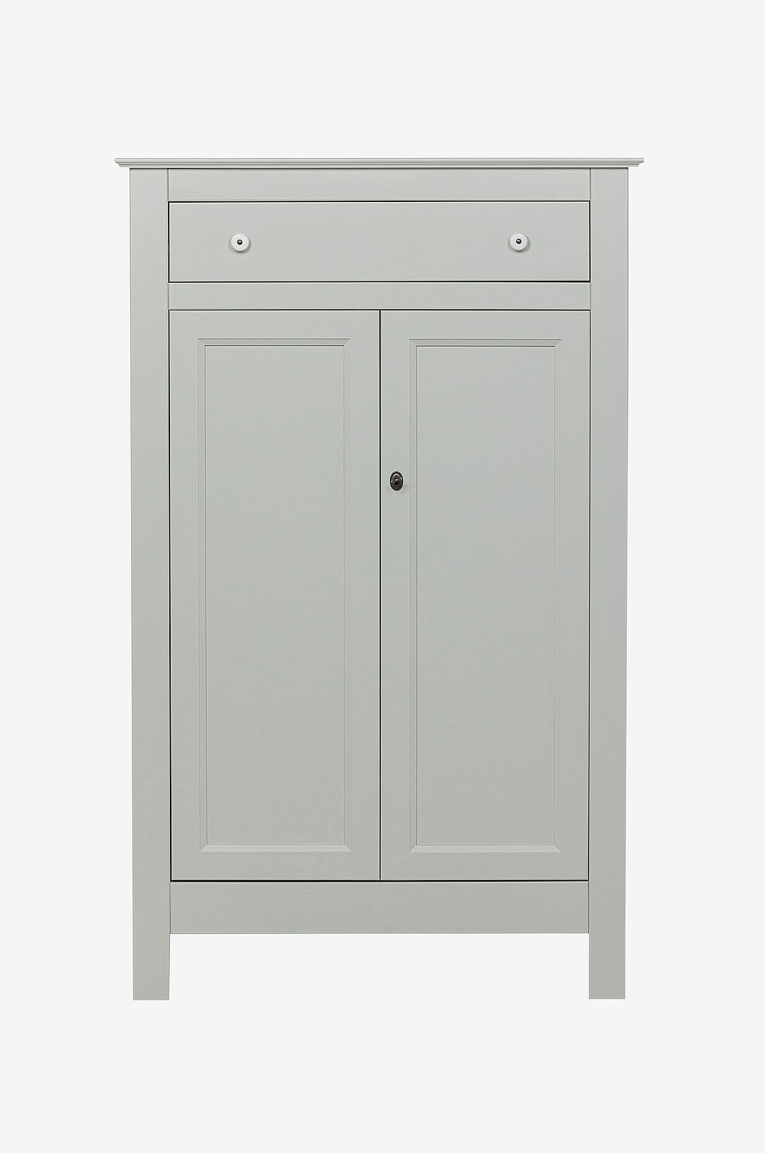 Detta är ett brocante väggskåp i lackerad, FSC-certifierad, tall. Detta väggskåp är tidlöst och passar in i alla interiörstilar. Insidan av detta skåp är tillverkat av laminerad spånskiva och den praktiska lådan upptill, med 2 porslinsknappar, är utrustad med massiv lådestyrare. Skåpets insida är försedd med 3 breda hyllor. Dörrarna är utrustade med massiva metallgångjärn och ett lås med nyckel. Eva-väggskåpet levereras som separata element och är lätt att montera med de medföljande monteringsanvisningarna. Mått: Höjd 150 x Bredd 93 x Djup 40 cm
