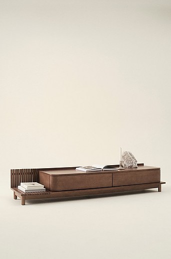 TV-bänk av massiv ek i kombination med MDF med matchande ekfaner. Den låga möbeln är i snygg design med runda hörn och mjuka linjer som kan föra tanken till den japanska stilen. Tv-bänken har två lådor och en liten sidohylla för praktisk förvaring. De runda raka ekbenen är fem till antalet. Möbeln är behandlad med vattenbaserad lack. Viss montering krävs. Monteringsanvisning medföljer. Material: Ek, MDF med ekfaner. Storlek: Höjd 32 cm, bredd 180 cm, djup 47 cm. Ribbor 1,8×2 cm. Ben ø 4 cm. Skötselråd: Torkas av med lätt fuktad trasa. Tips/råd: MINO finns även som sängbord.
