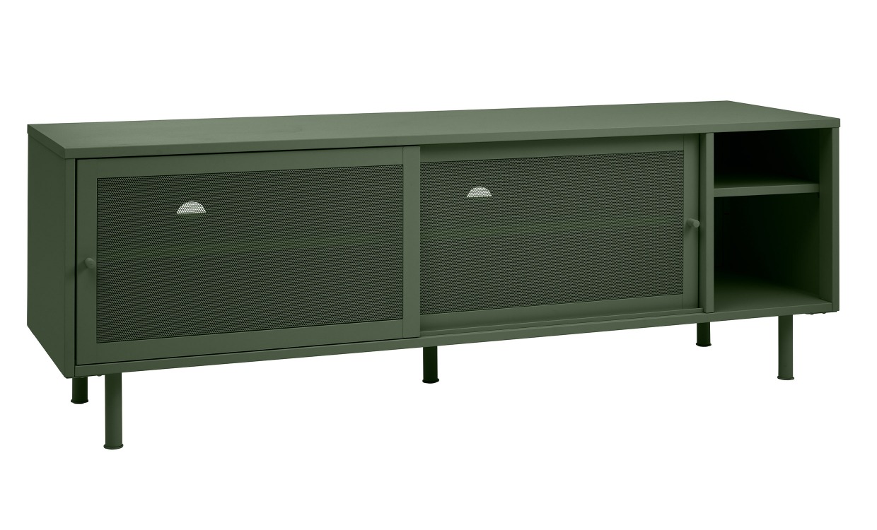 Vilde är en stilren och praktisk TV-bänk med gott om förvaring. TV-bänken är en unik men anpassningsbar möbel som inte går ur tiden, utan lätt passar in bland många stilar och hem. Bänken är tillverkad i metall med en avskalad design som ger ett stilrent utseende.Design & egenskaperStilren TV-bänk med generös förvaring.Tillverkad i metall.Har dimensionerna 160x55x45cm.Leverans & förpackningLevereras omonterad.Antal förpackningar: 1 st.Vikt: 29 kg.