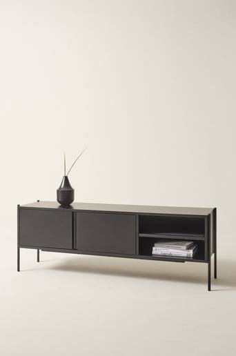 Tv-bänk i mattlackerad MDF med mattsvarta ben av stål. ZOLLIK är tidlöst i sin rena design, av de tre avdelningarna har två delar, en slät lucka och en del är öppen. Luckorna har pushfunktion. Varje avdelning har ett fast hyllplan. Kombinationen av dold förvaring och öppna hyllor är både praktiskt och snyggt. Skruvar ingår. Viss montering krävs. Monteringsanvisning medföljer. Väggfäste ingår. Material: MDF och stål. Storlek: Höjd 55 cm, bredd 160 cm, djup 40 cm. Avstånd mellan hyllplan 14 cm. Frihöjd under möbel 20 cm. Maxvikt: 150 kg. Skötselråd: Torkas av med lätt fuktad trasa. Tips/råd: Serien ZOLLIK innehåller flera fina möbler som matchar varandra snyggt.