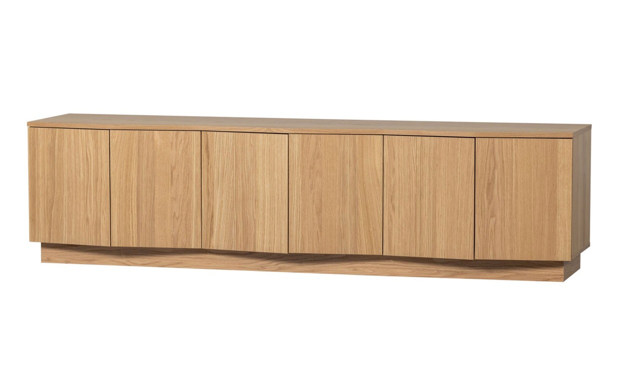 Zuma är en stilren tv-bänk från WOOOD som kombinerar modern design med praktisk funktion. De unikt formade skåpluckorna och den naturliga ekfärgen ger ett sofistikerat och tidlöst intryck. Tv-bänken har sex dörrar som öppnar upp till rymlig förvaring, perfekta för att organisera dina prylar. Den synliga ådringen och de naturliga knutarna i ekfanéret ger varje möbel en autentisk och personlig karaktär. För ökad säkerhet rekommenderas väggfäste för att förhindra att skåpet välter.Design & egenskaperStilren tv-bänk från WOOOD.Bänken har sex dörrar för rymlig förvaring.Tv-bänkens mått är: H 52 cm x B 200 cm x D 45 cm.Dörrarnas dimensioner är: H 42 cm x B 33.1 cm x D 1.7 cm.Bordet tål max 35 kg.Material & skötselTillverkad i ek. Rengörs med en lätt fuktad trasa.Leverans & förpackningLevereras omonterad.Antal förpackningar: 2 st.Förpackningsmått förpackning 1: 13x46x99 cm.Vikt förpackning 1: 28 kg.Förpackningsmått förpackning 2: 3,7x54x206,6 cm.Vikt förpackning 2: 23 kg.