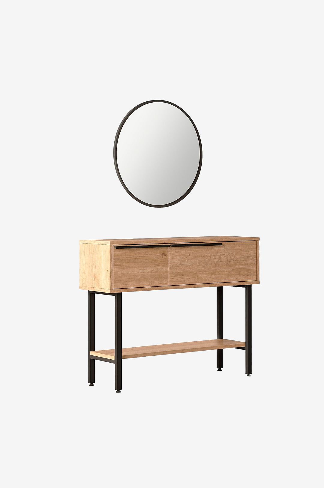 100% melaminbelagd spånskiva tjocklek: 18 mm bredd: 100 cm höjd: 76 cm djup: 29,5 cm spegelstorlek: bredd: 60 cm höjd: 60 cm djup: 1,8 cm Ben i metall