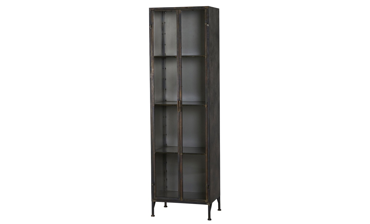 Bremen är ett fint skåp i stilren och enkel design. Möbeln är tillverkad i järn med en robust finish. Skåpet erbjuder en generös förvaring i form av fyra hyllplan med glasdörrar.Design & egenskaperSkåp med stilren och enkel design.Tillverkad i järn med robust finish.Måttet på skåpet är: 56x42x189cm.Maxvikt per hylla: 8 kg.