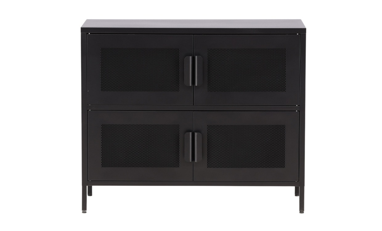 Dahlia är ett modernt skåp med en trendig industriell design. De eleganta nätluckorna på dörrarna ger en luftig känsla och skapar en fin balans mellan öppen och dold förvaring. Med två hyllplan och fyra luckor finns det gott om plats för allt från porslin till dekorationer. Toppskivan är robust och passar perfekt som avlastningsyta samtidigt som du kan skapa ett stilrent intryck i ditt hem. Design & egenskaperModernt skåp med en trendig industriell design.Dörrarna har nätluckor som ger en luftig känsla.Dimensionerna är: 75x90x40 cm.Material & skötselTillverkad i pulverlackerat stål.Torkas av med en mjuk, fuktig trasa.Undvik starka rengöringsmedel för att skydda ytan.