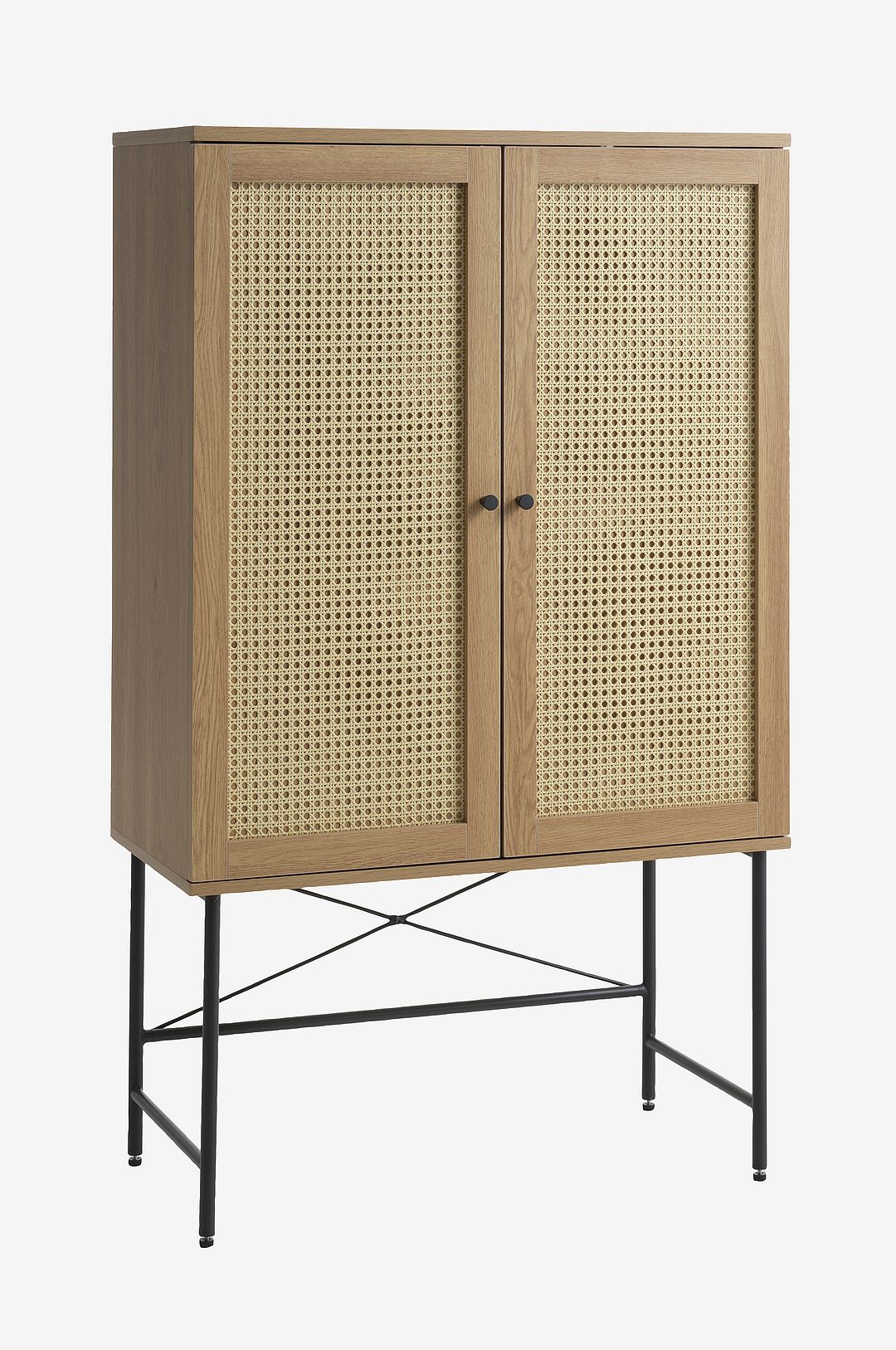 Kollektionen Brooklyn består av attraktiva, mångsidiga möbler i modern stil med retrokänsla och många detaljer som dörr och lådinsatser av svart polyrotting, i kombination med handtag och ben av svart metall samt en stilfull, svart ekfinish med struktur.