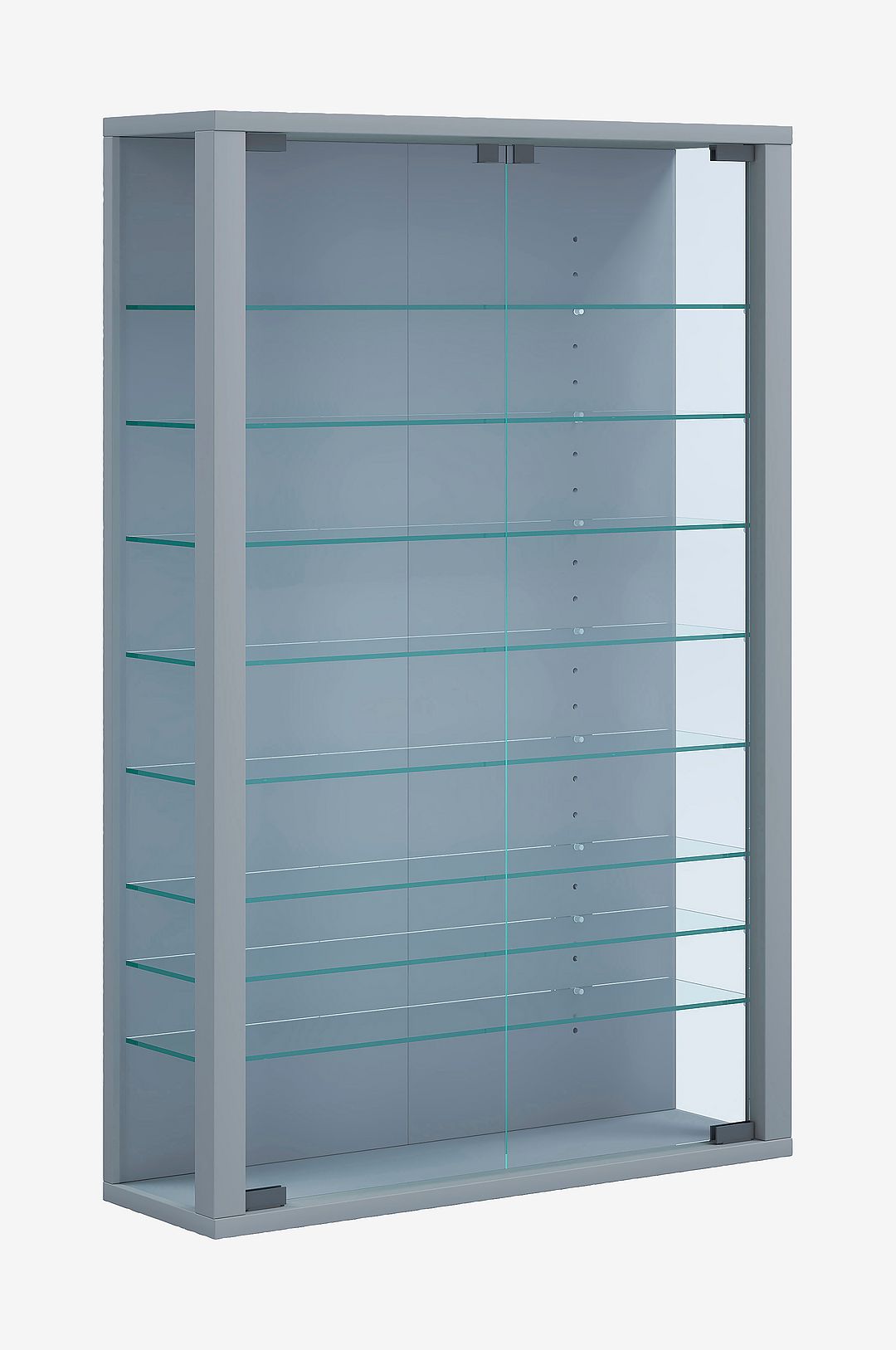 Vcm väggskåp ”vitrosa mini” utan LED-belysning. – ramen är tillverkad av trä med en stabil bakvägg. – universellt användbart. – glasskåpet innehåller 8 glashyllor, sidodelarna och dörrarna är tillverkade av ESG-förstärkt säkerhetsglas. – Enkel väggmontering möjlig. – Levereras demonterat i kartong inkl. monteringsanvisningar och monteringsmaterial. – Mått: h.90 x b.59 x d.18 cm. – Belysning ingår ej.
