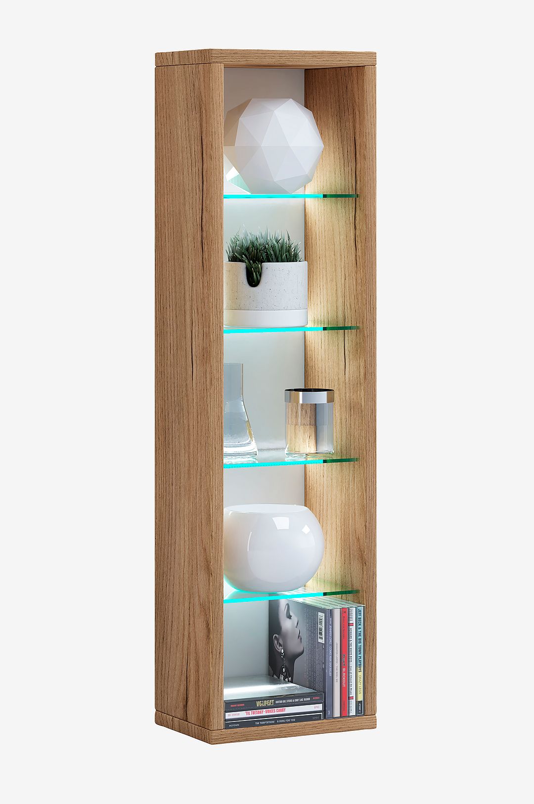 Höjdpunkter: – modern cd/dvd-hylla – fyra variabla hyllplan av esg-säkerhetsglas – för 102 cd-skivor, 36 dvd-skivor eller 20 videofilmer – finns i olika färger – imitation av trästruktur – mått h. 77 x b. 21 x d. 14 cm vcm vägghylla ”rasito l” finns i olika färgvarianter. Den eleganta hyllan erbjuder tillräckligt med utrymme för cd-skivor, dvd-skivor eller hemtillbehör. Tack vare de variabla glashyllorna kommer dina samlarskatter till sin rätt på bästa sätt.
