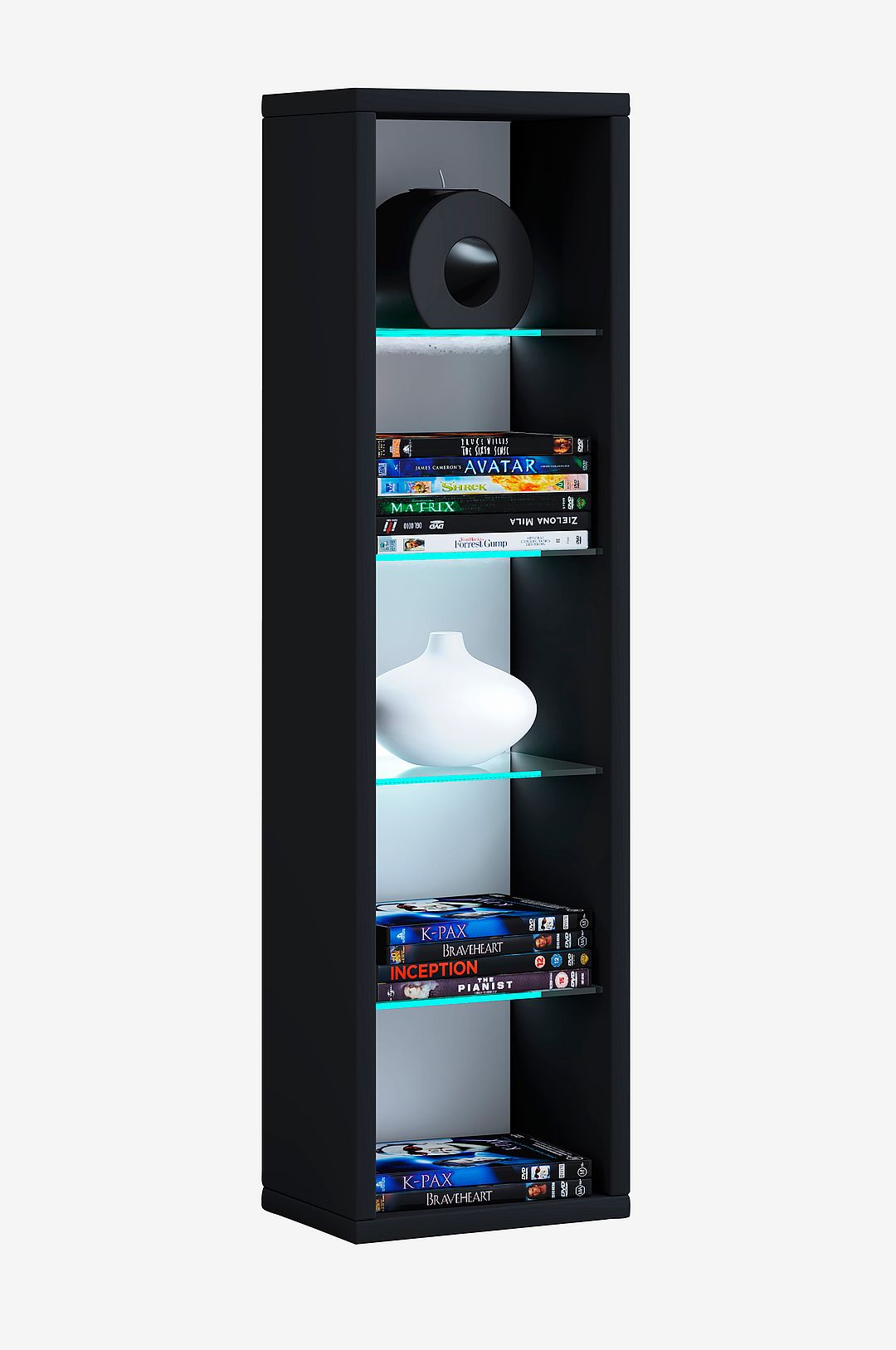 Höjdpunkter: – modern cd/dvd-hylla – fyra variabla hyllplan av esg-säkerhetsglas – för 102 cd-skivor, 36 dvd-skivor eller 20 videofilmer – finns i olika färger – imitation av trästruktur – mått h. 77 x b. 21 x d. 14 cm vcm vägghylla ”rasito l” finns i olika färgvarianter. Den eleganta hyllan erbjuder tillräckligt med utrymme för cd-skivor, dvd-skivor eller hemtillbehör. Tack vare de variabla glashyllorna kommer dina samlarskatter till sin rätt på bästa sätt.