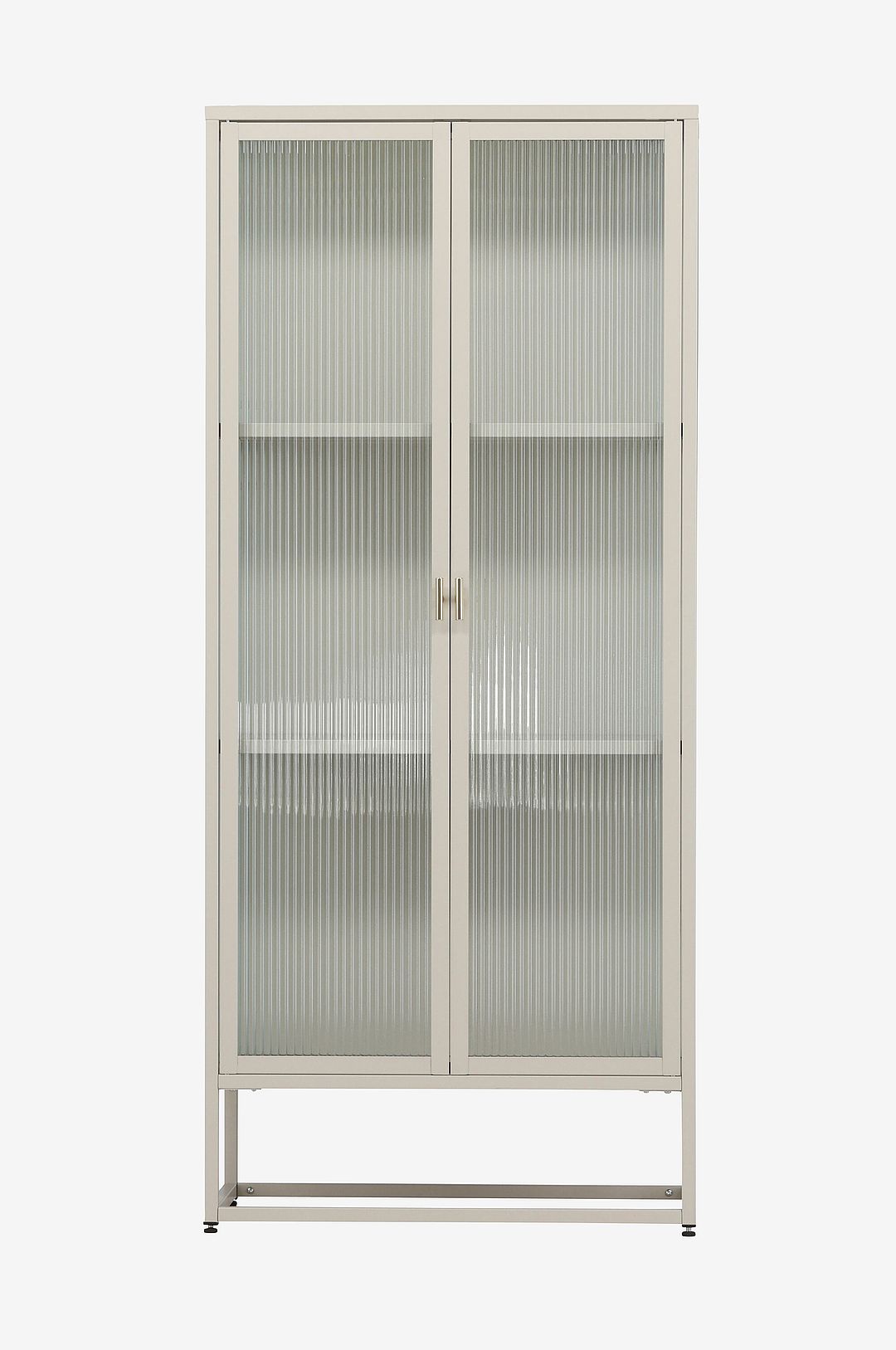 Garis är ett smakfullt skåp som kombinerar funktion och design i perfekt harmoni. Det har två höga glasdörrar med räfflad struktur, vilket skapar ett sofistikerat utseende och ett vackert spel av ljus och skugga. Den beiga finishen ger ett mjukt, tidlöst intryck som passar både moderna och klassiska inredningar. Med två medföljande hyllplan erbjuder garis gott om förvaringsutrymme – perfekt för allt från porslin till dekorativa föremål. ett skåp som både lyfter din inredning och organiserar ditt hem med stil.