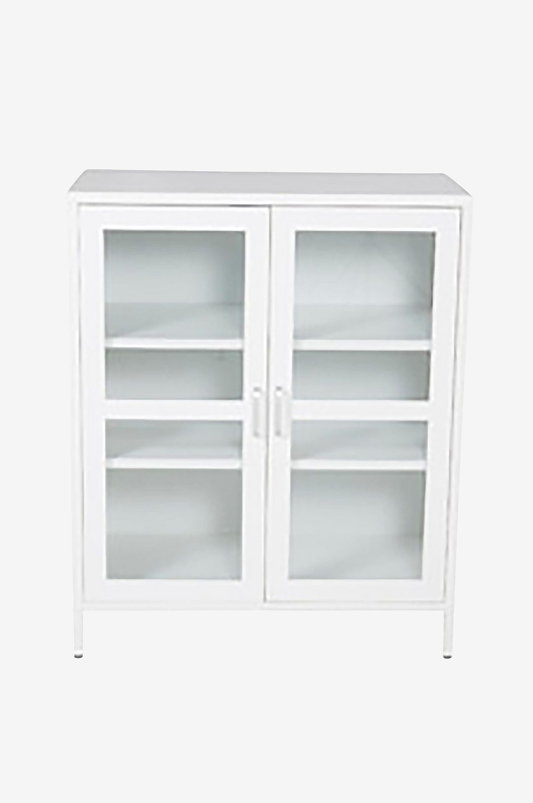 Aciel vitrinskåp i stål med dörrar i glas med en stålram runt. Mått: Bredd 80, djup 43 och höjd 97 cm. Viktkapacitet: 30 kg