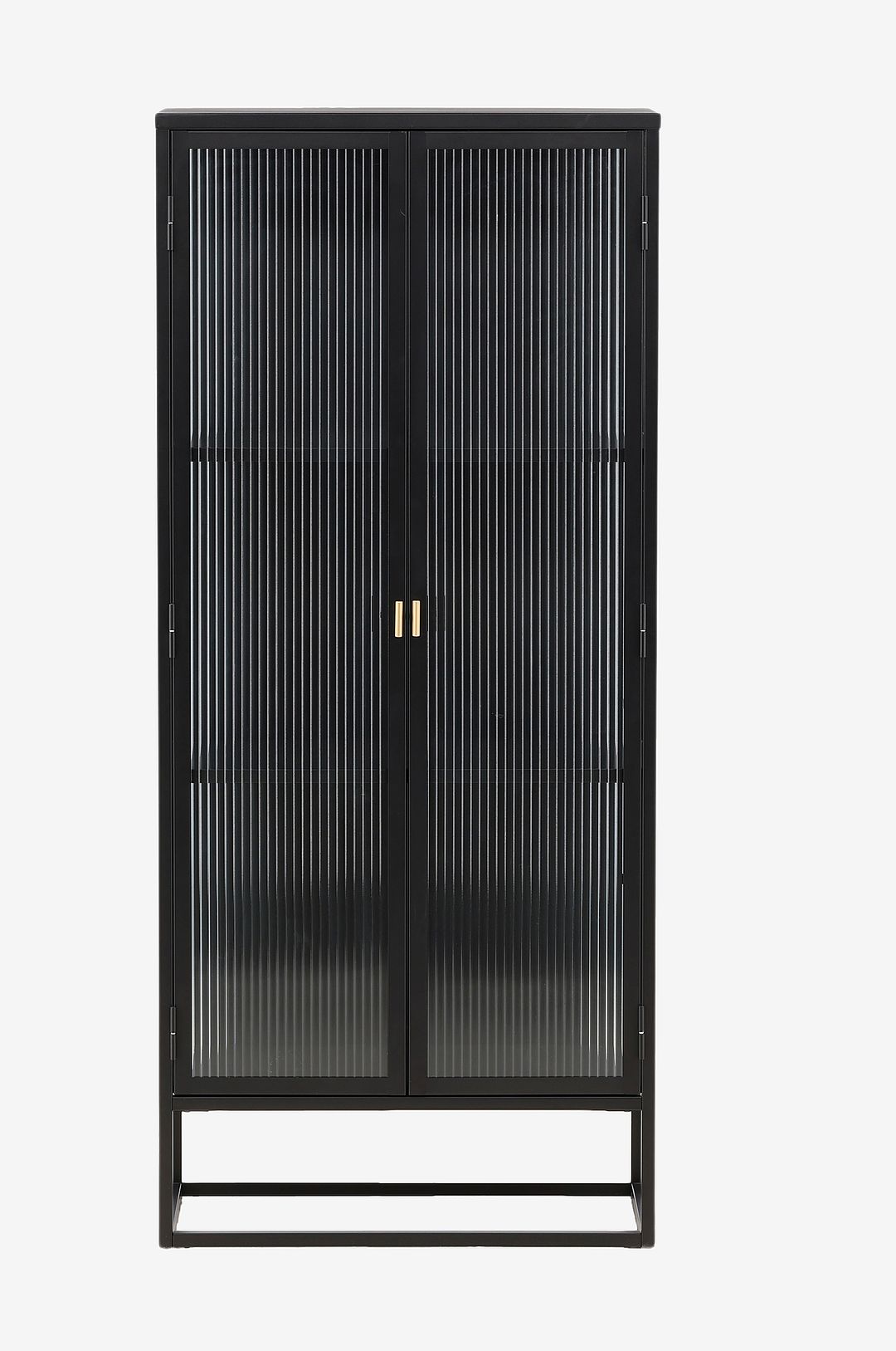 Vitrinskåpet är ett populärt tillskott till inredningen med eleganta förvaringsmöjligheter! Skåpet från serien Garis har en modern design med raka strukturer, tillverkad i pulverlackerat svart stål. Skåpet har tre avlastningsytor för ditt finporslin och två höga dörrar i glas som är semi-transparenta som ger ett härligt ljusinsläpp i skåpet.