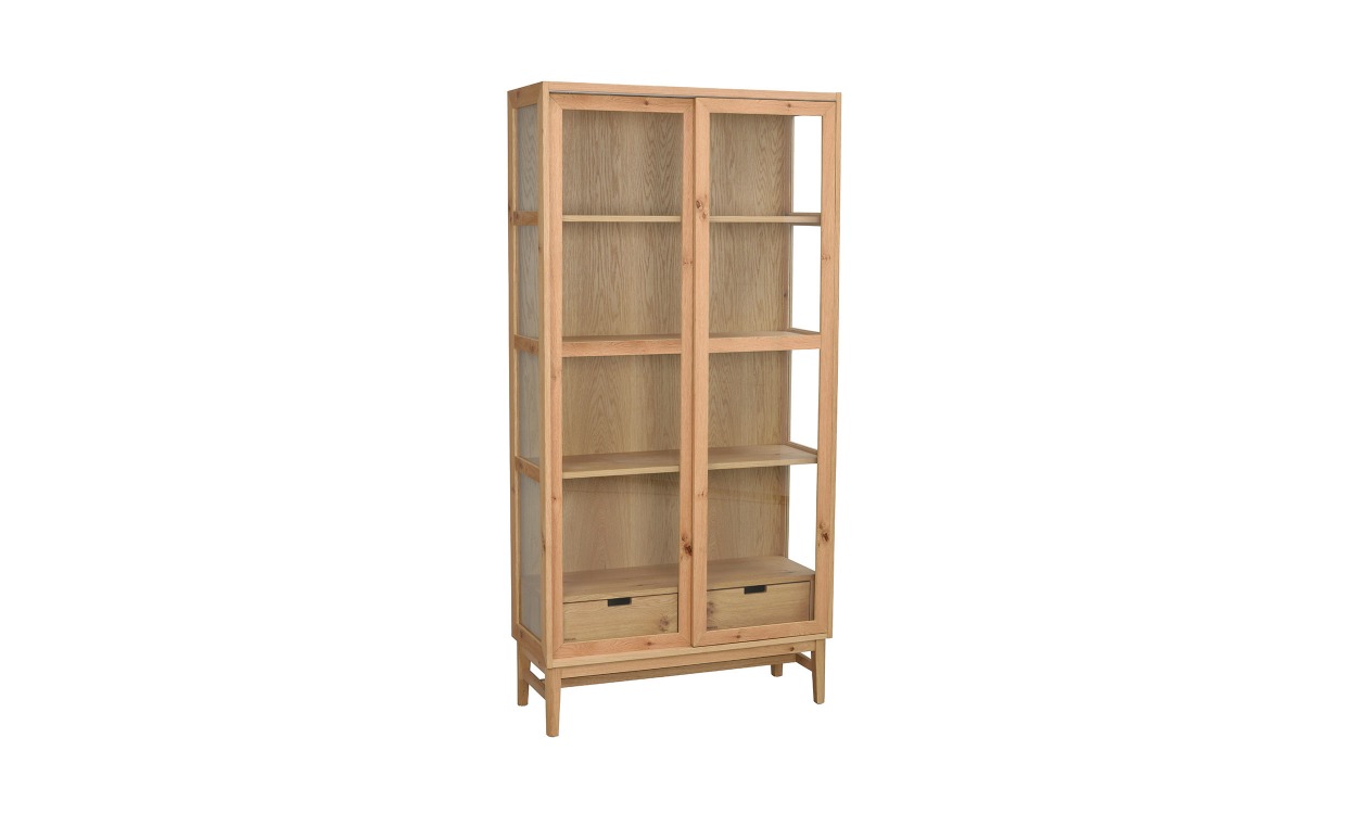 Hazelton vitrinskåp från Rowico är ett läckert skåp med vintagekänsla. Materialet är i oljad FSC®-certifierad ek med glasdörrar. Dörrarna är skjutdörrar och i skåpet finns tre fasta hyllplan. Skåpet har också två mjukstängande lådor för extra förvaring. Vitrinskåpet passar både i hallen, köket, sovrummet, i vardagsrummet och gör sig fint med de andra möblerna ur serien Hazelton.Design & komfortHazelton vitrinskåp från Rowico är ett läckert skåp med vintagekänsla, glasdörrar och praktisk förvaring.Skåpet är 100 cm brett, 203 cm högt och 40 cm djupt.Material & skötselMöbeln är tillverkad i massiv ek i ben, spånskiva med ekfaner på alla plana ytor.Rengör möbeln med en urvriden trasa. Använd inte något rengöringsmedel förutom mild tvål. Eftertorka alltid med en torr trasa.Leverans & förpackningMontering krävs, delvis monterad. Kommer med tillhörande monteringsanvisning.