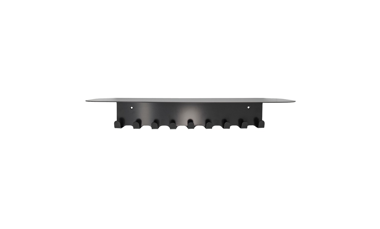 Book är ett stilren klädhängare som skapar ordning i din hall eller garderob. Med 9 krokar och en hylla finns det gott om plats för jackor, väskor och det du vill förvara och organisera.Design & egenskaperPraktisk klädhängare i stilren design.Tillverkad av stål.Har dimensionerna 60x18x10 cm.Maxvikt: 5 kg.Torkas av med en torr trasa.